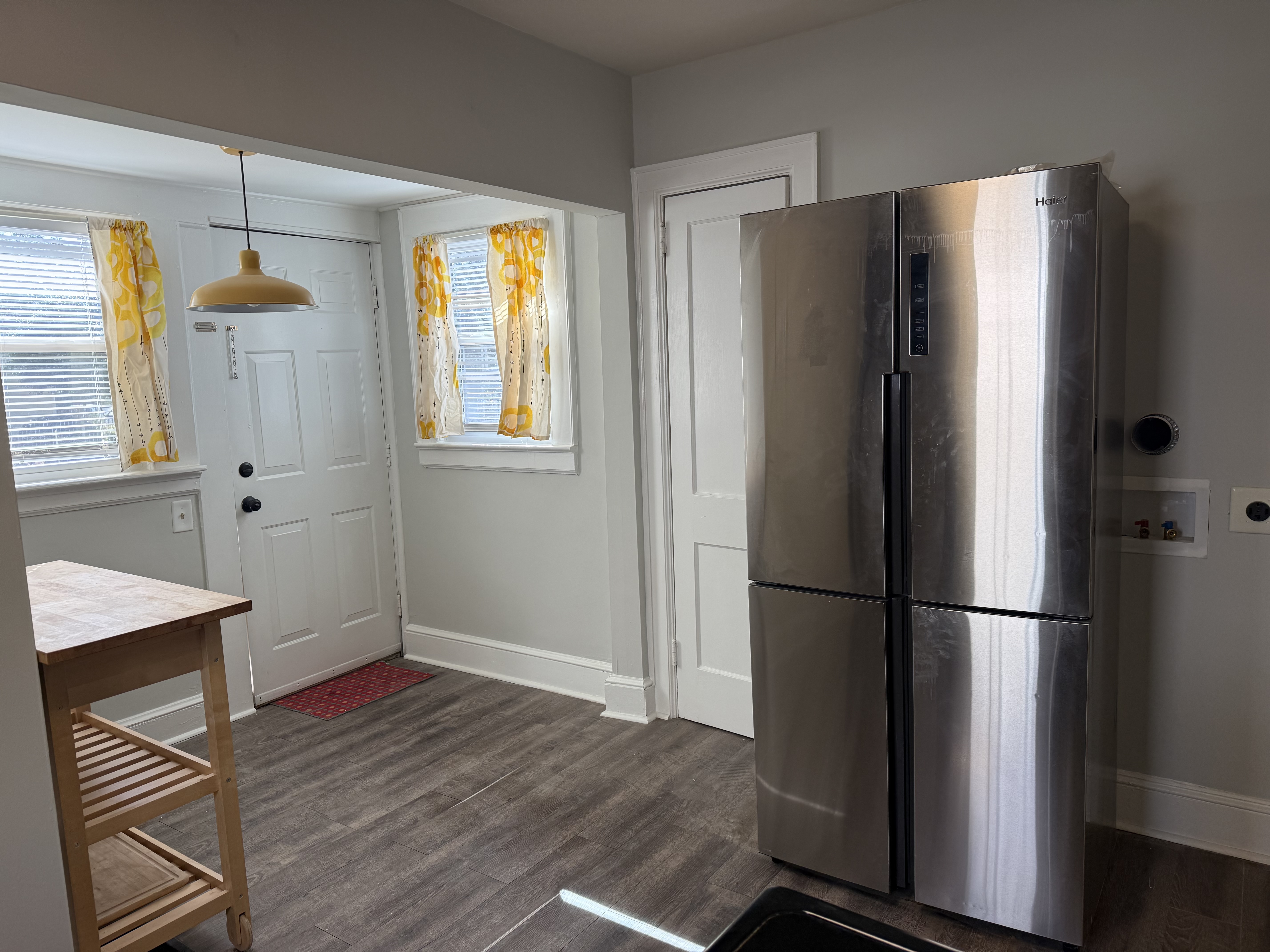 Recently updated kitchen with new tile floor and counter tops. Large laundry room off of kitchen. Close to schools, shopping and parks.